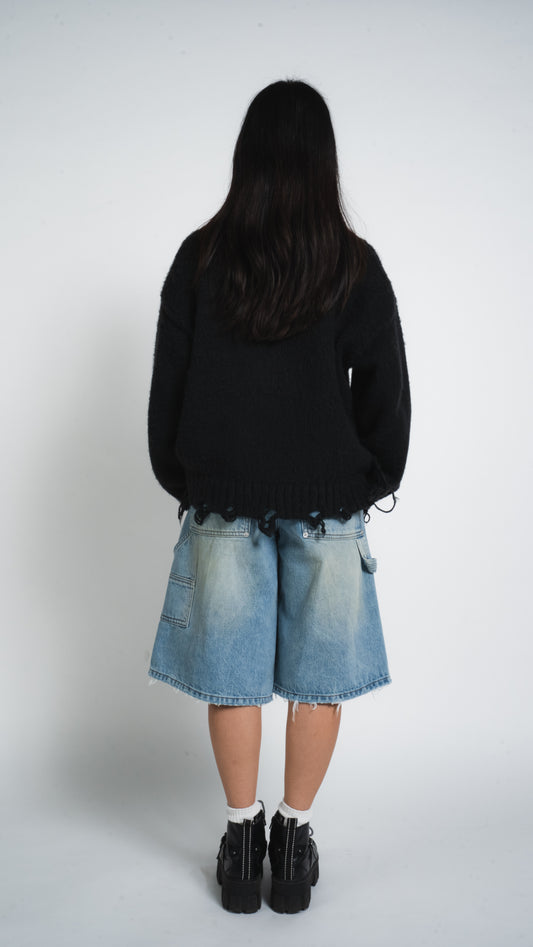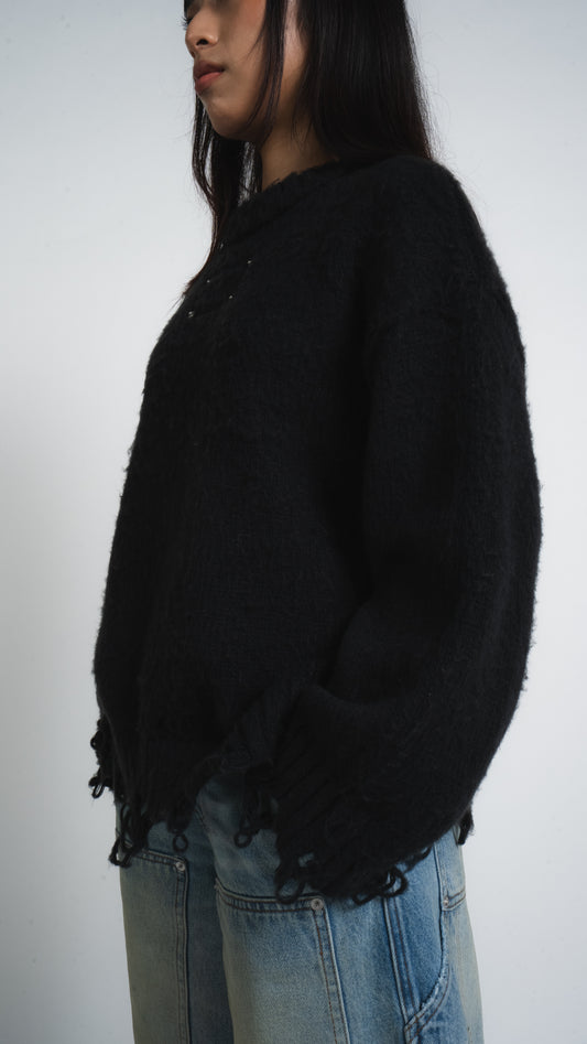Sold outBLACK DISTRESSED SWEATER