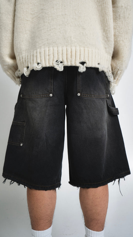 Sold outPANELED DENIM SHORT WASHED BLACK